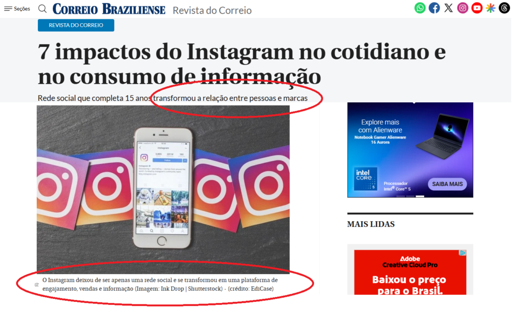 ✅ O Instagram é acessado por grande parte das pessoas diariamente — postagens marcantes têm mais chances de serem salvas e compartilhadas. Site: Correio Braziliense