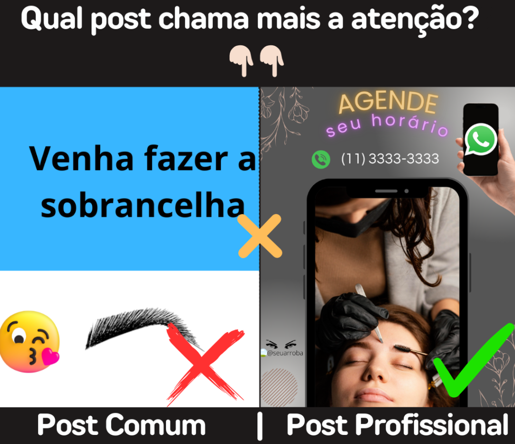 ✅ Postagens profissionais (valorizam o seu serviço, aumentam o valor percebido do seu trabalho, facilitando cobrar o preço justo sem medo).
